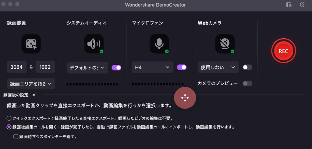 下記の画面で直感的に設定して録画をしたら、、